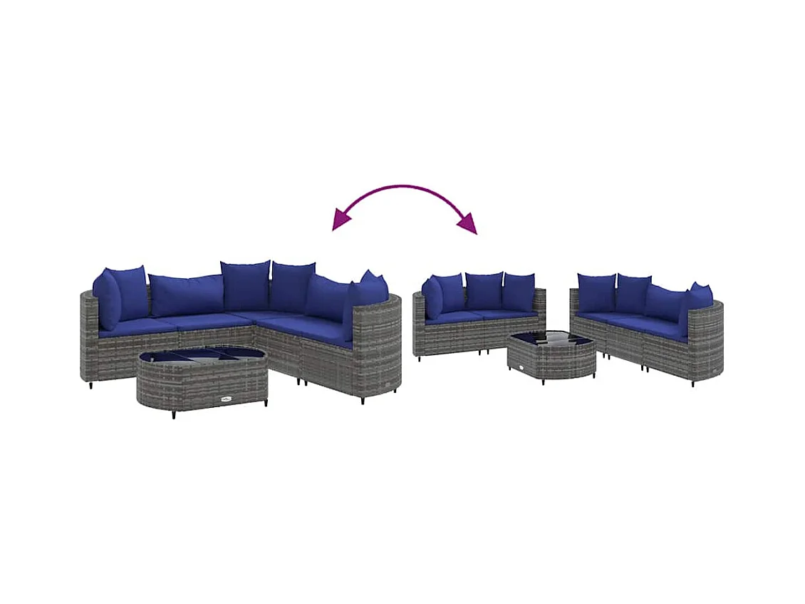 Salon de jardin 6 pièces avec coussins gris résine tressée