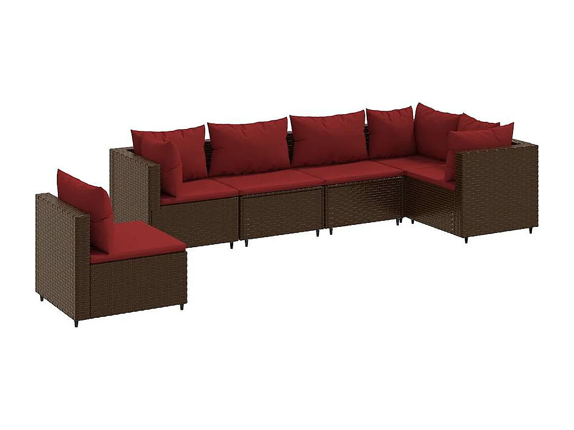 Salon de jardin 6 pièces avec coussins Marron Résine tressée