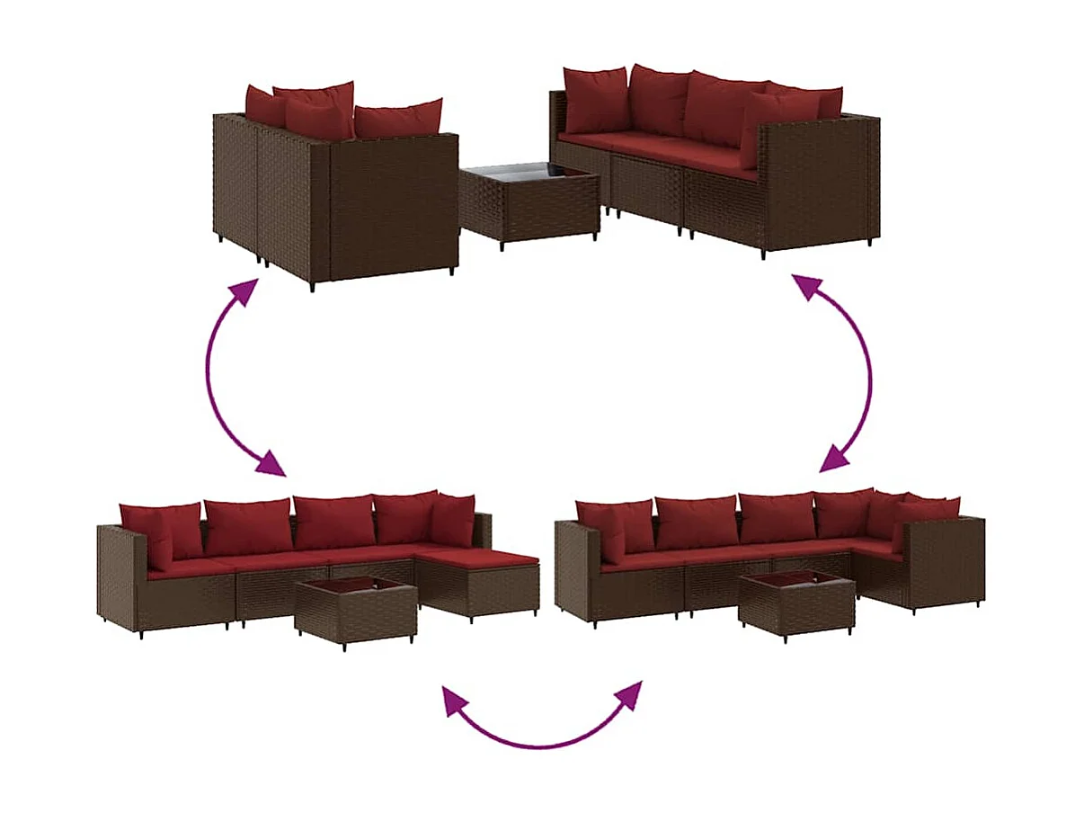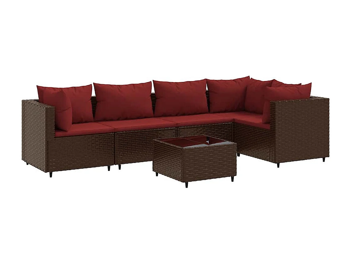 Salon de jardin 6 pièces avec coussins Marron Résine tressée