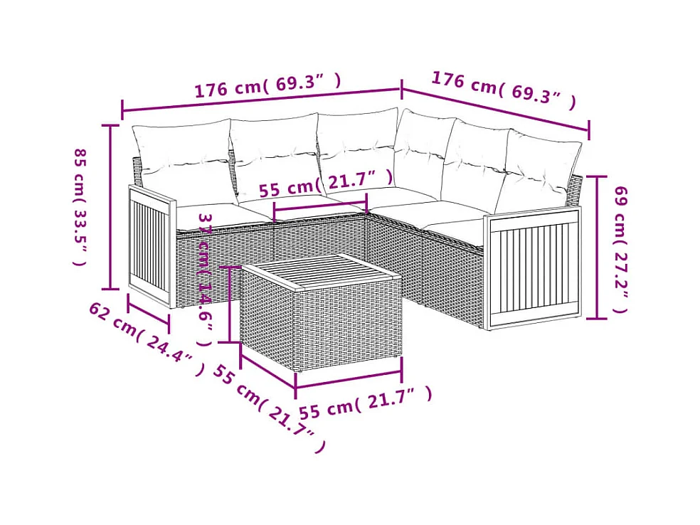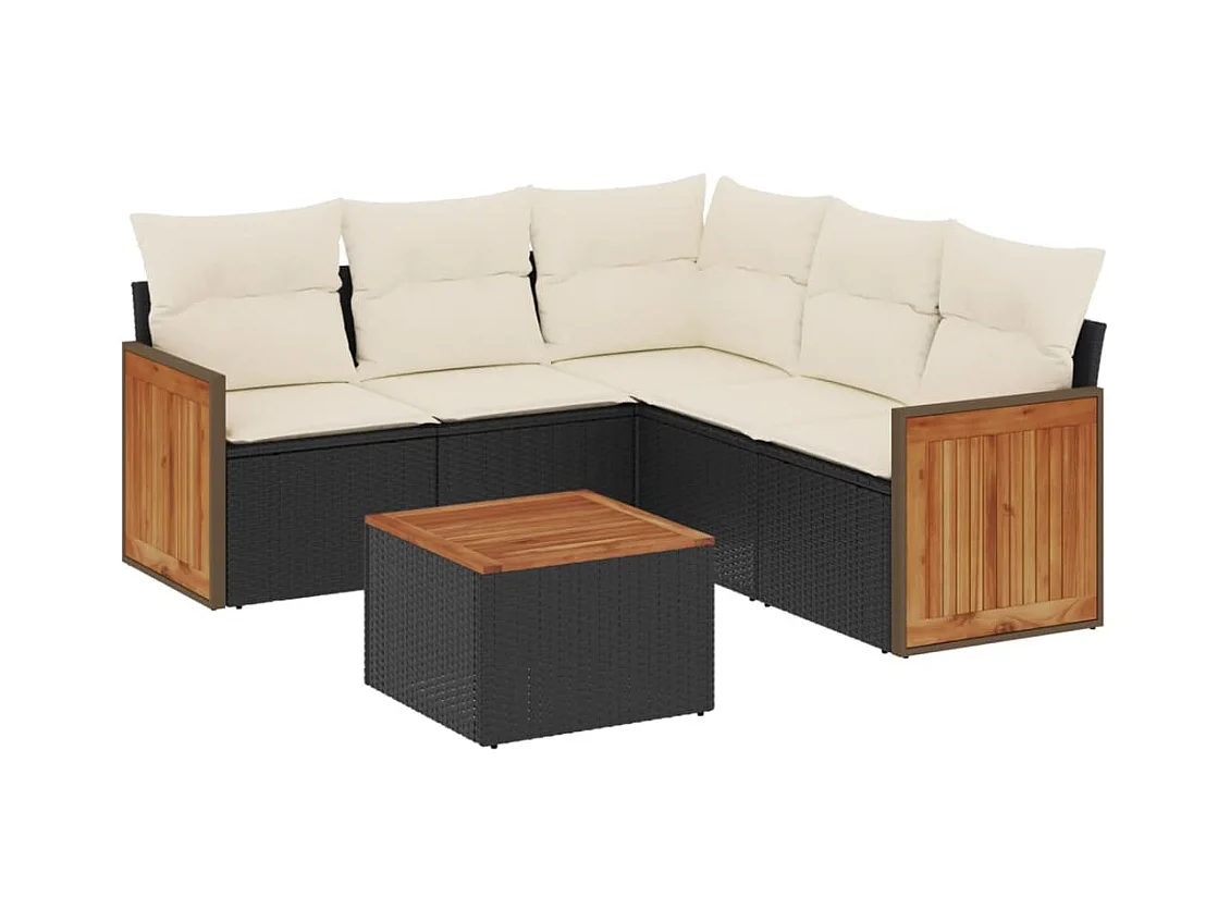 Salon de jardin 6 pièces avec coussins noir résine tressée