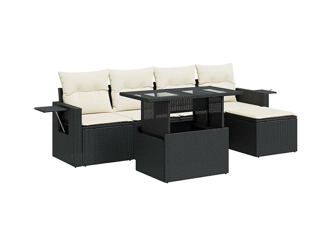 Salon de jardin 6 pièces avec coussins noir résine tressée