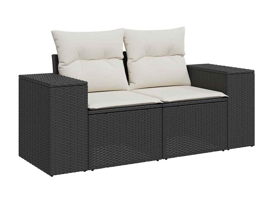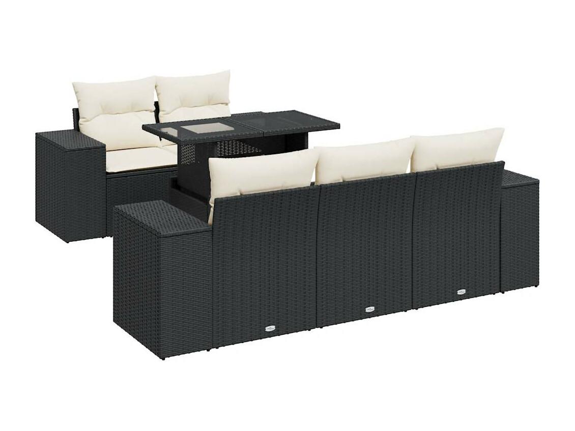 Salon de jardin 6 pièces avec coussins noir résine tressée