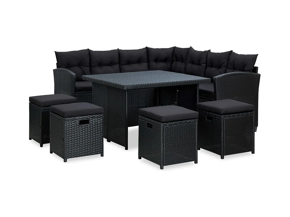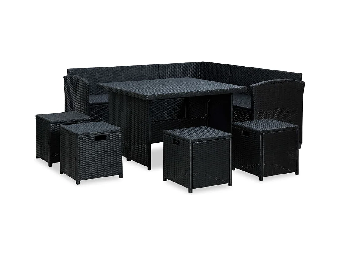 Salon de jardin encastrable 5pcs et coussin Résine tressée Noir BE55381