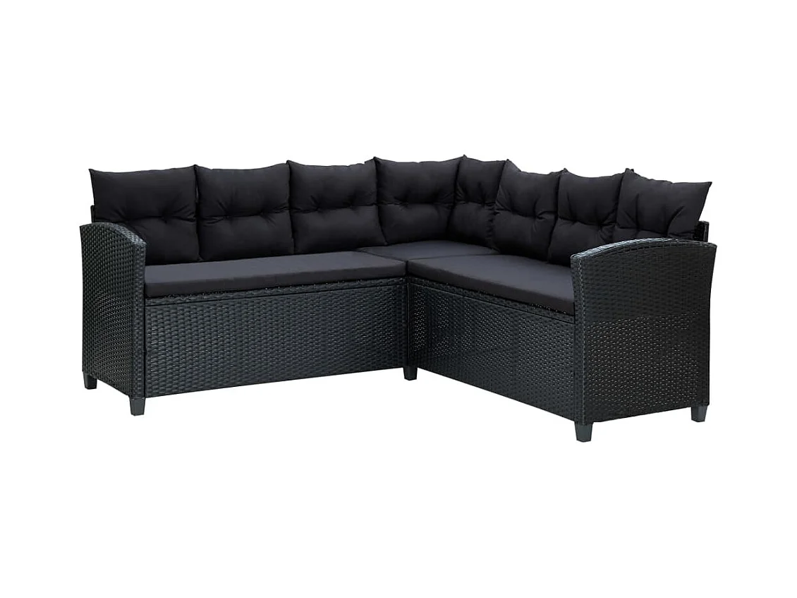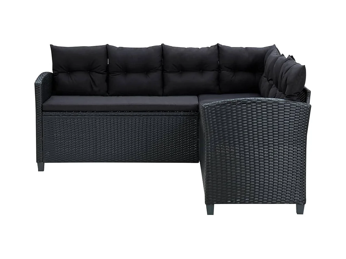 Salon de jardin 3 pièces avec coussins forme L noir résine tressée