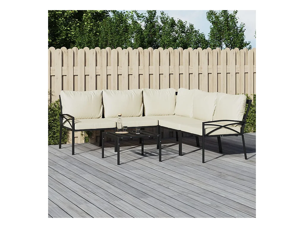 Salon de jardin avec coussins 5 pièces noir acier enduit de poudre