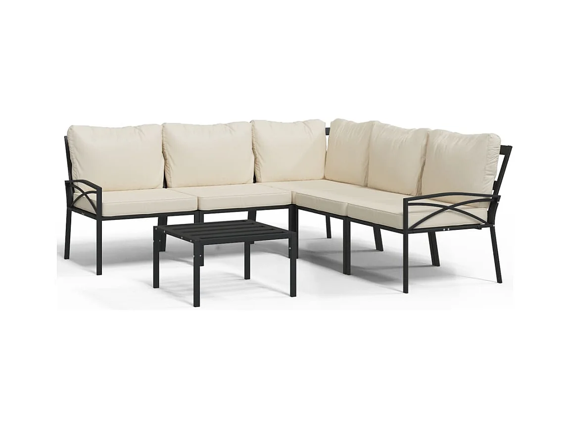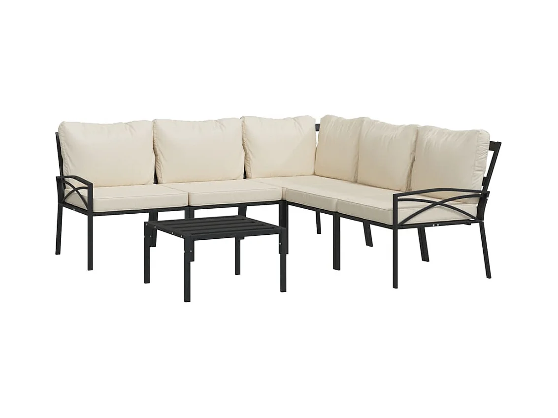 Salon de jardin 6 pièces avec coussins sable acier