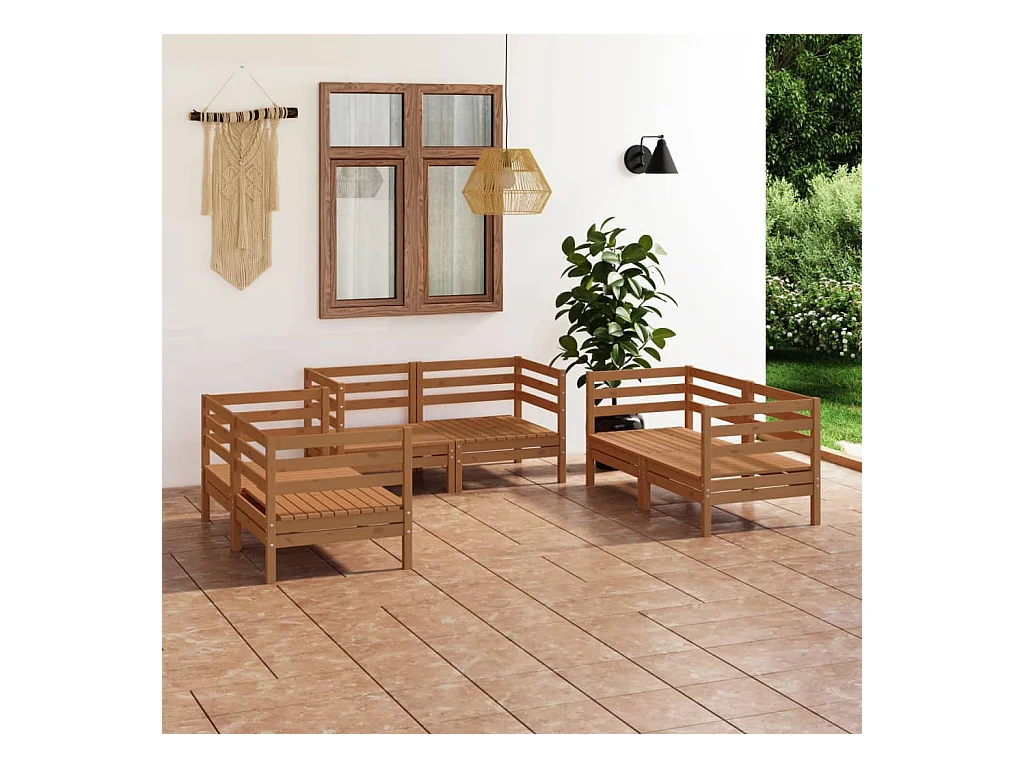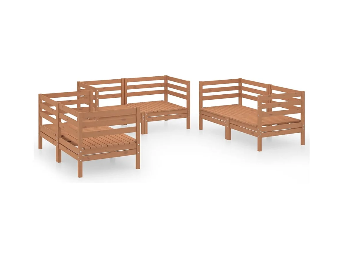 Salon de jardin 6 pièces Marron miel Bois de pin massif