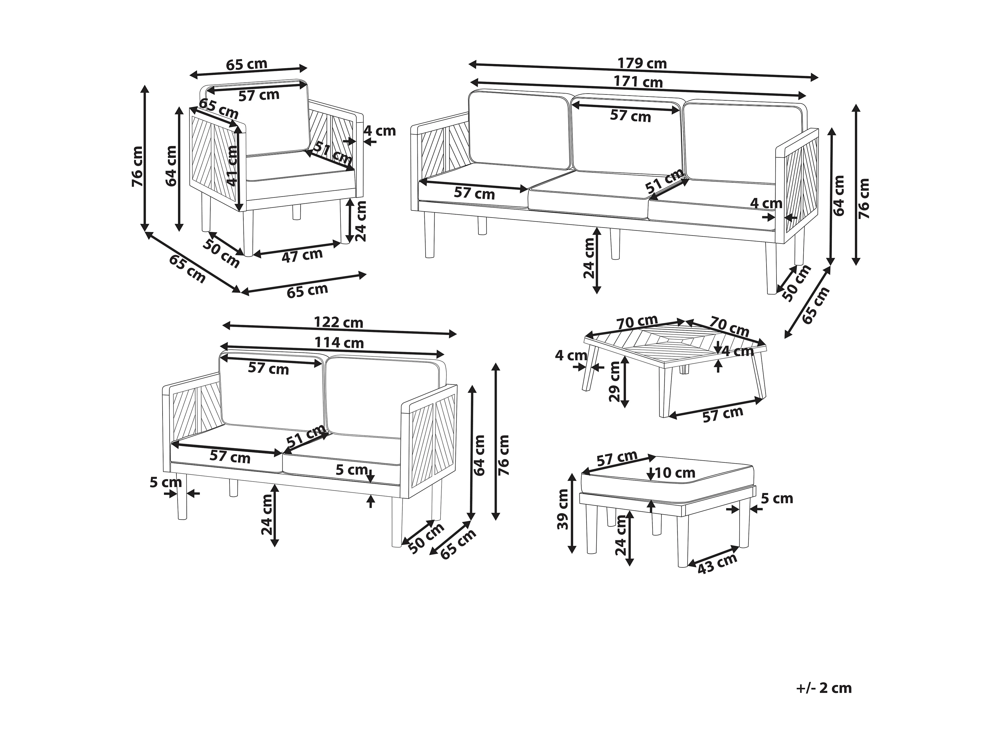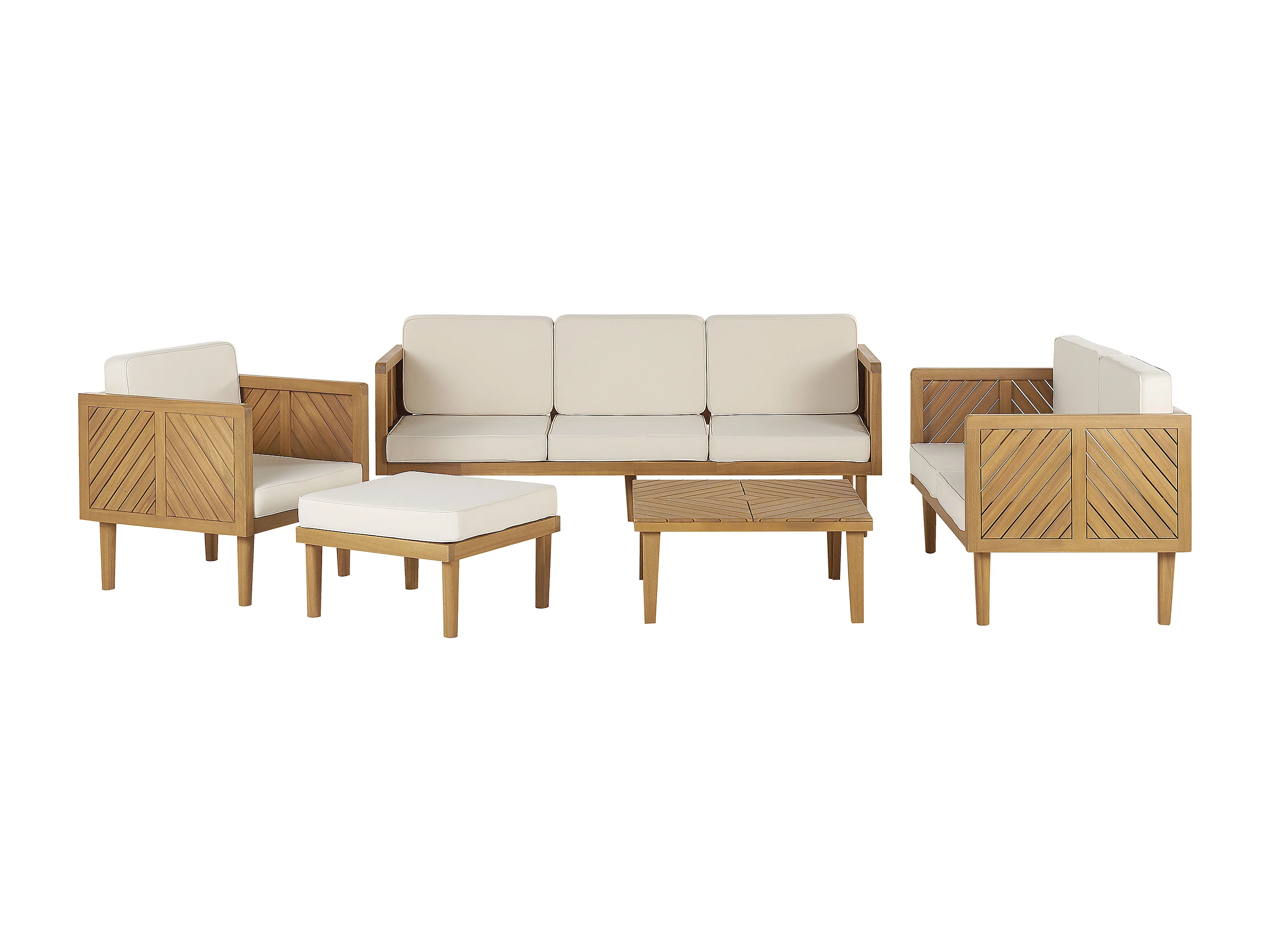 Ensemble de salon de jardin avec table et ottoman 6 places BARATTI Acacia Marron