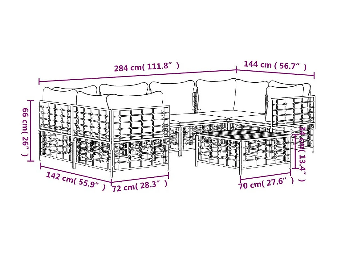 Salon de jardin 7 pcs avec coussins anthracite résine tressée
