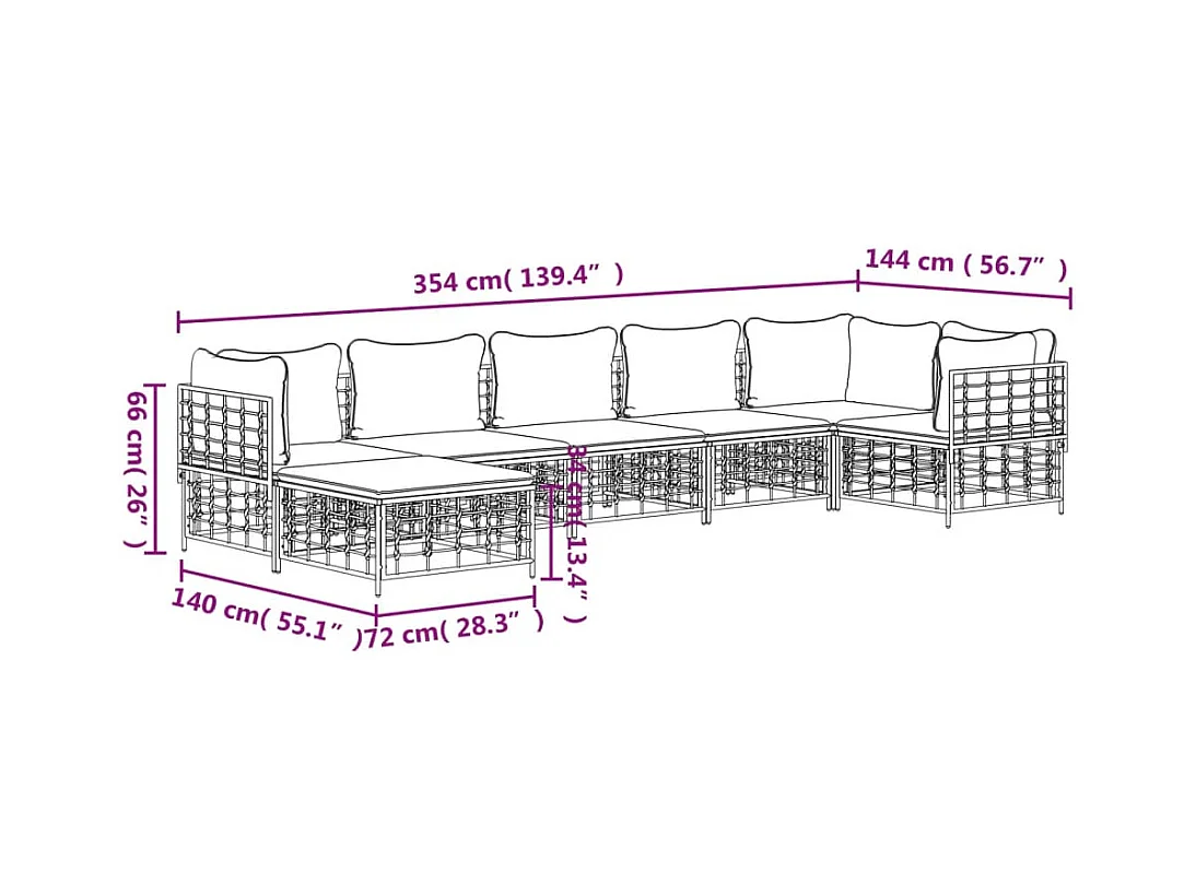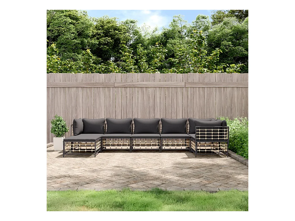 Salon de jardin 7 pcs avec coussins anthracite résine tressée