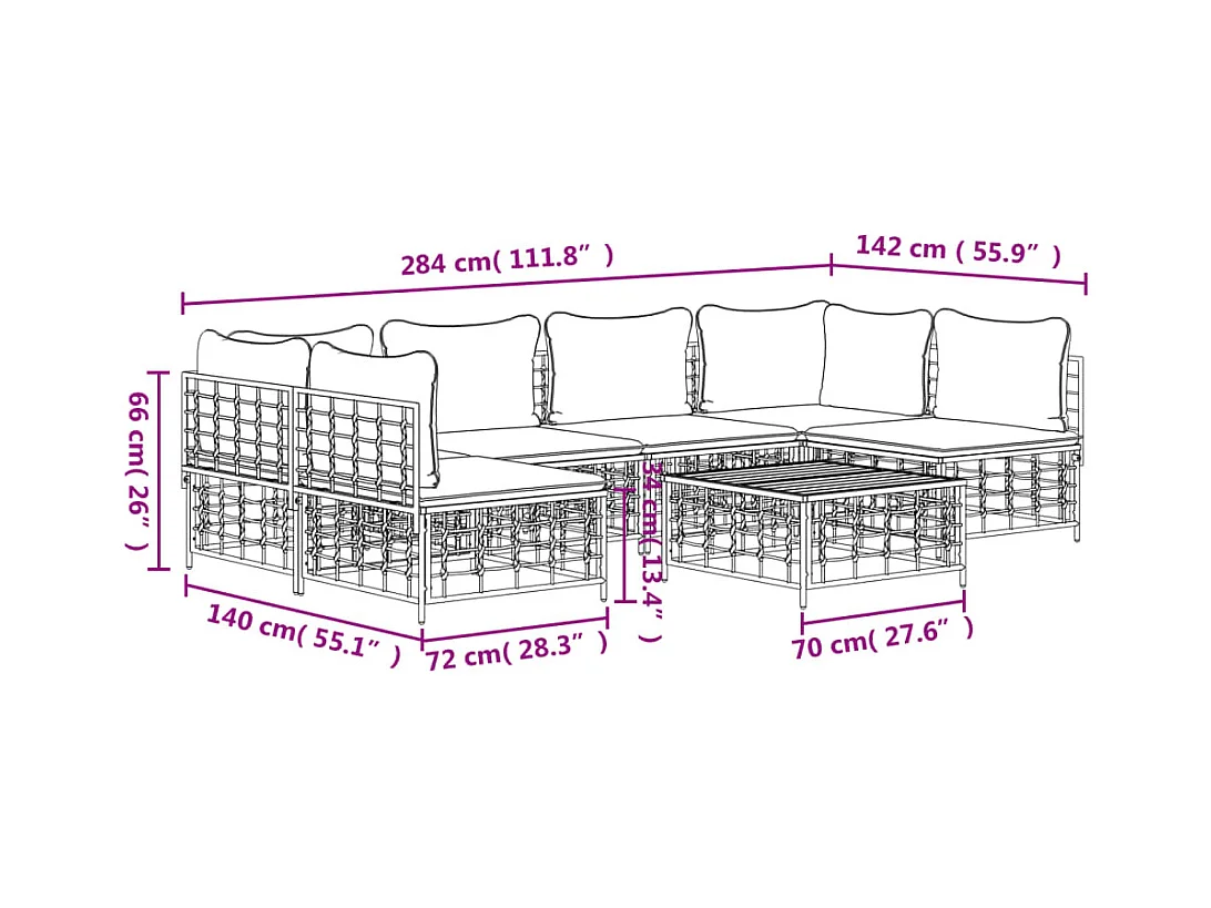 Salon de jardin 6 pcs avec coussins résine tressée anthracite