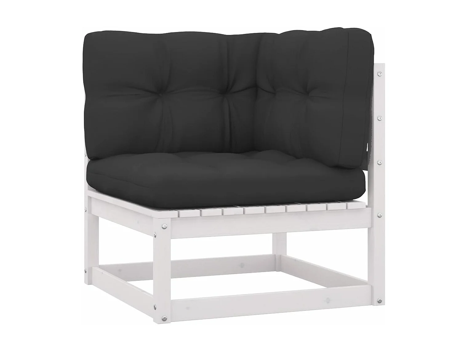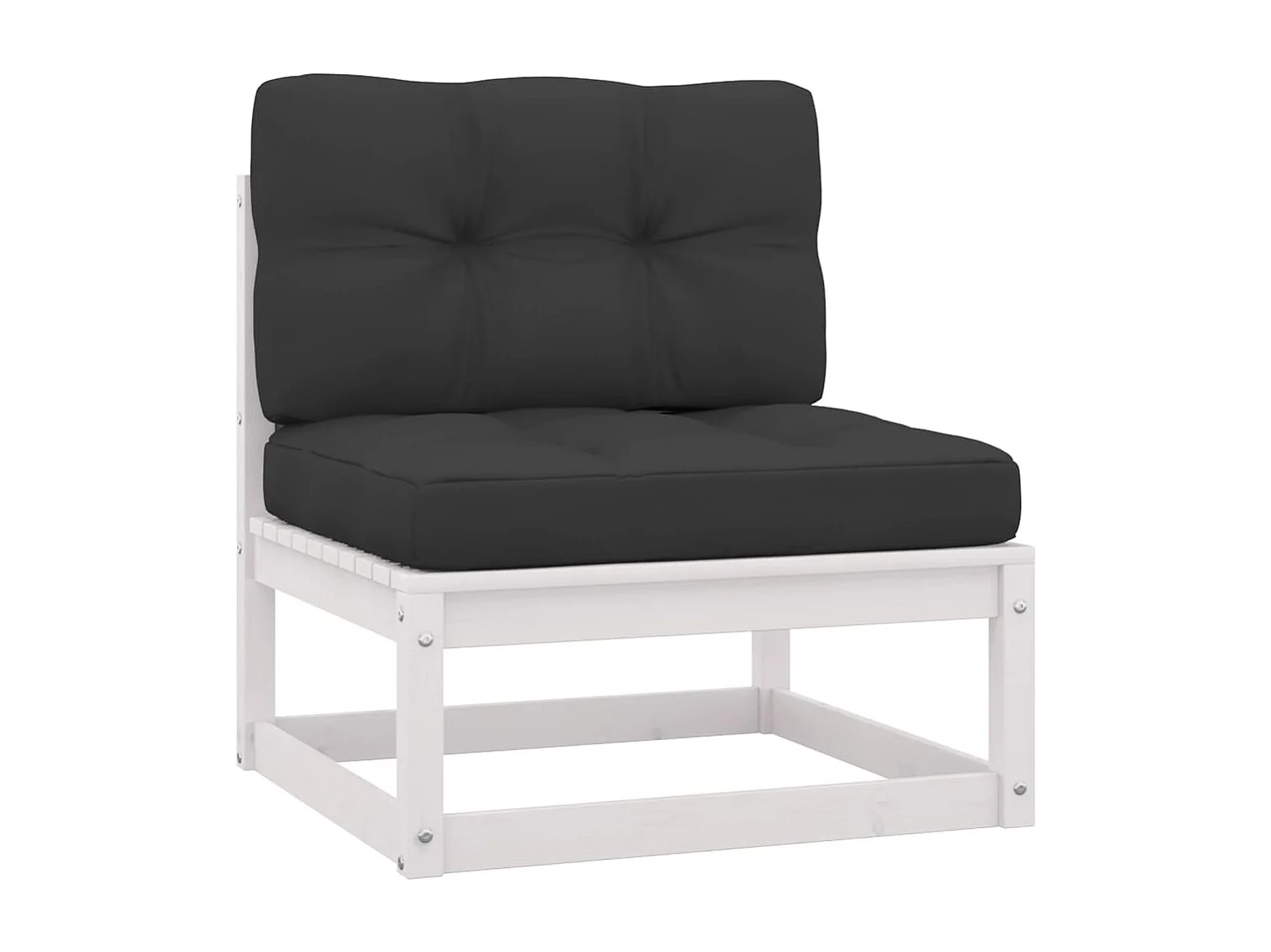 Salon de jardin 7 pcs avec coussins blanc bois de pin massif