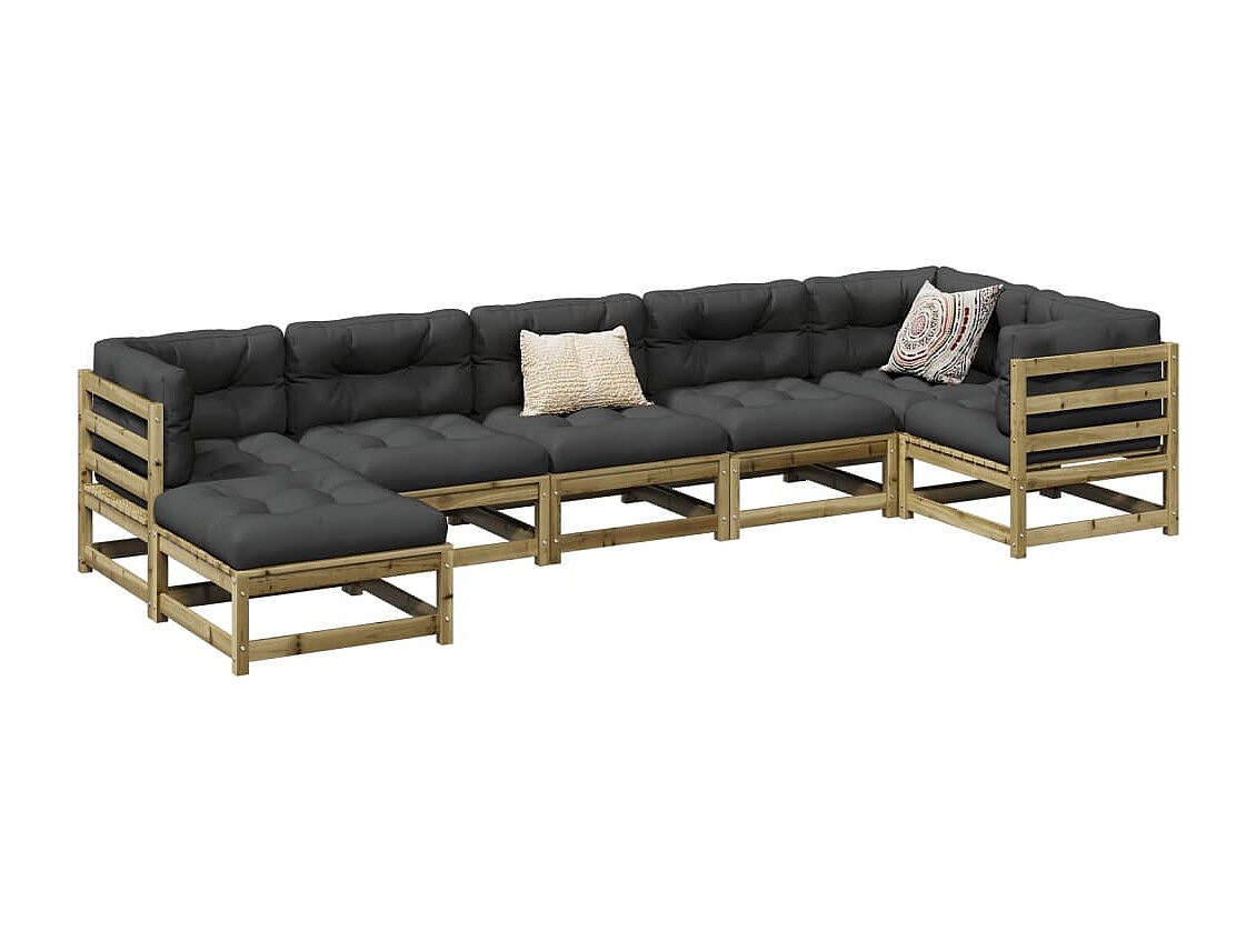 Salon de jardin 7 pcs avec coussins bois de pin imprégné