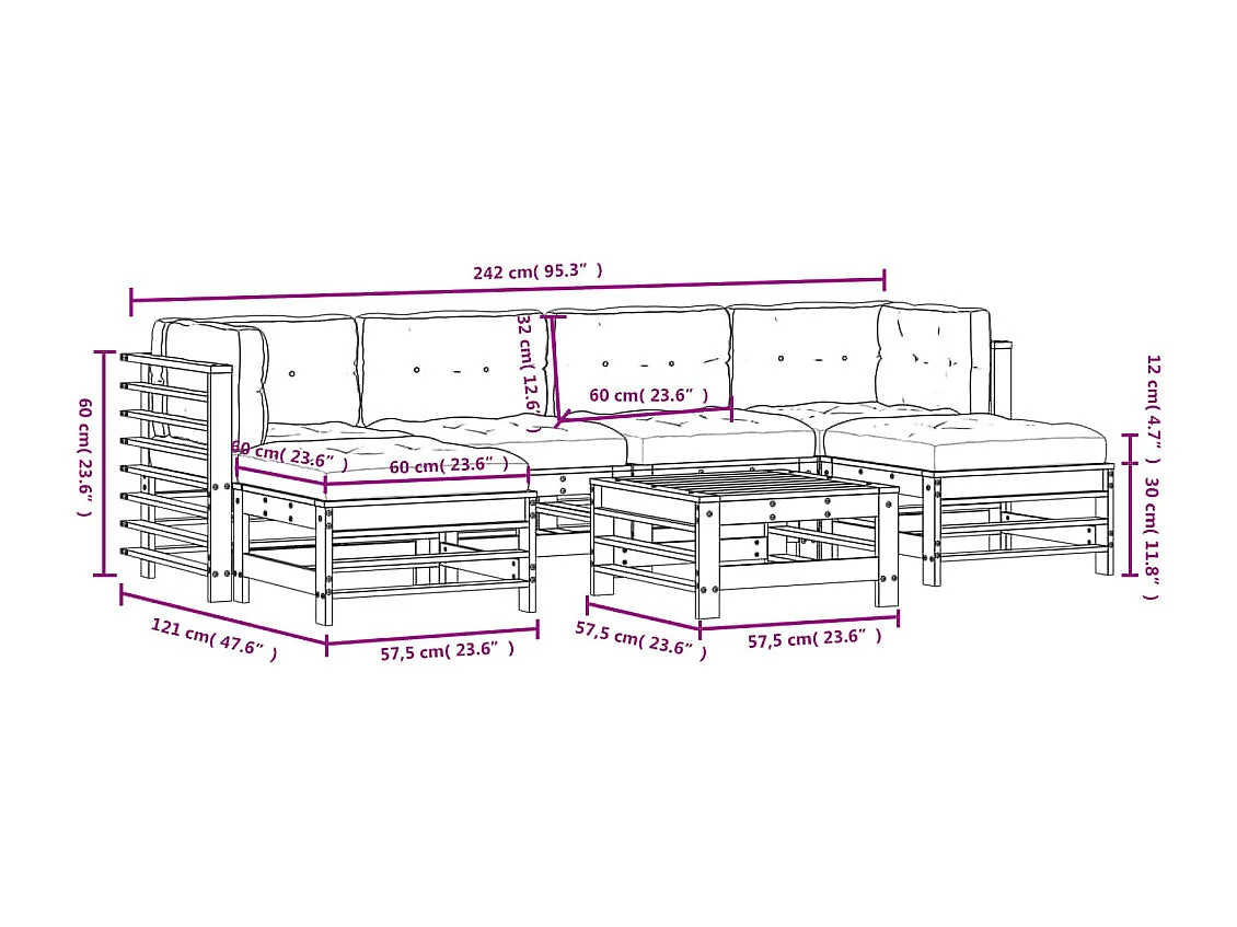 Salon de jardin 6 pcs avec coussins bois massif Douglas