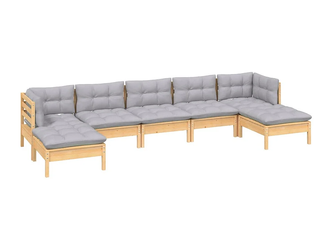 Salon de jardin 7 pcs avec coussins gris Bois de pin 7