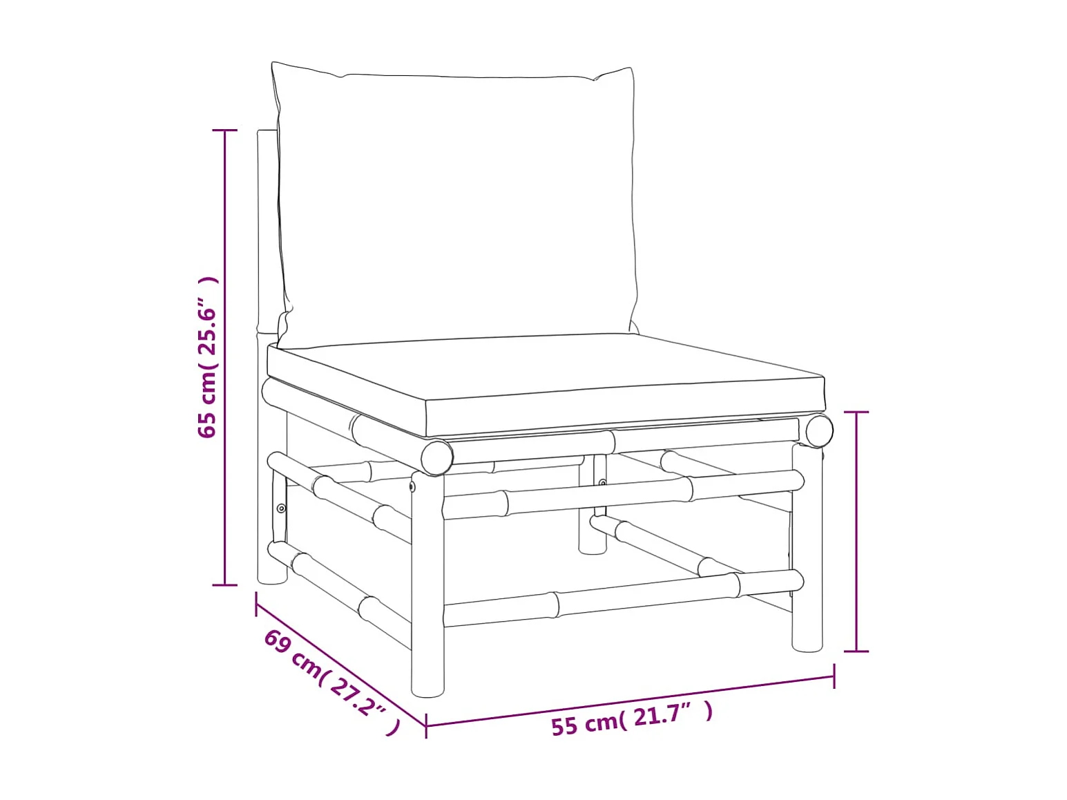 Salon de jardin 7 pcs avec coussins gris clair bambou