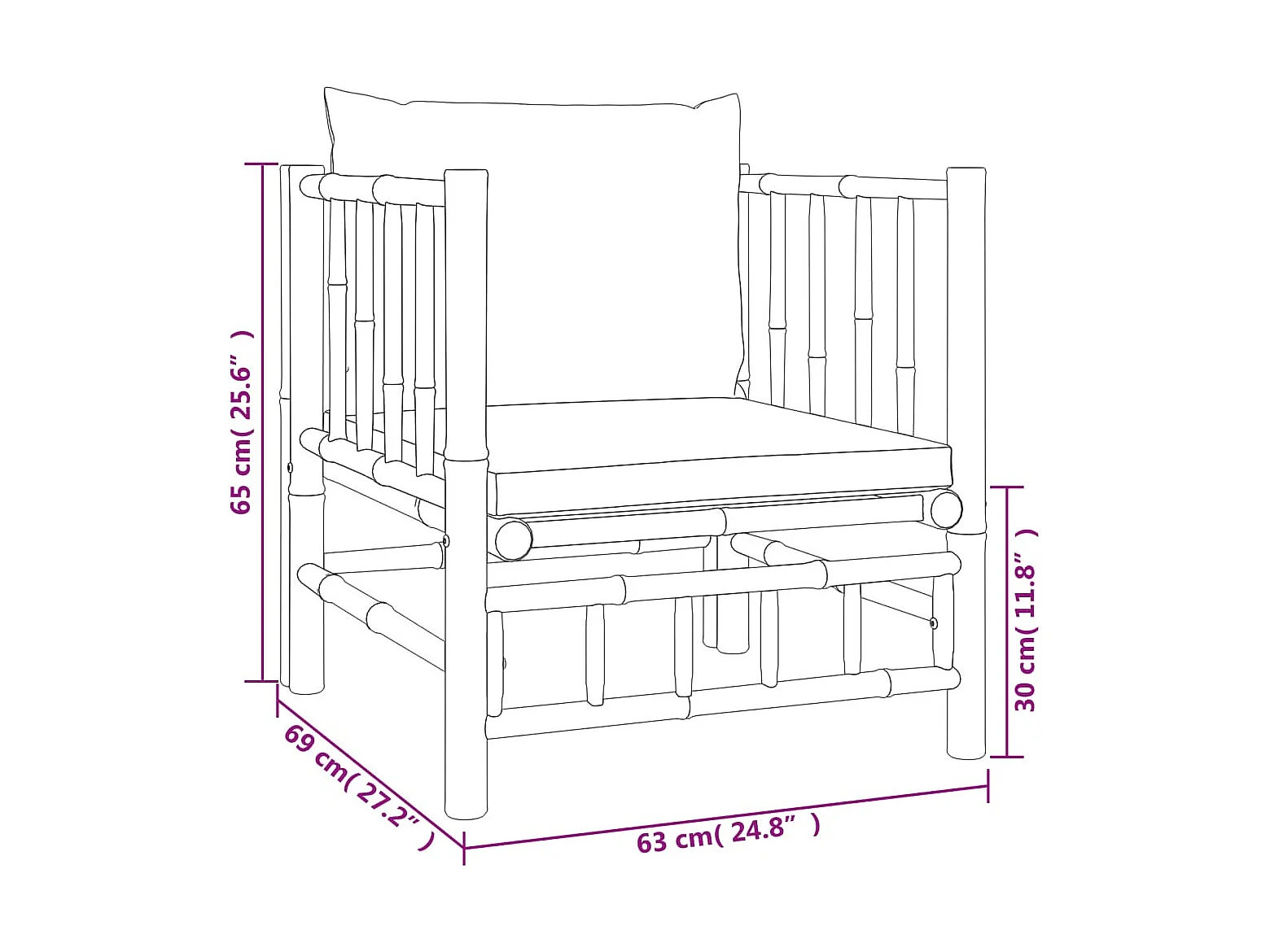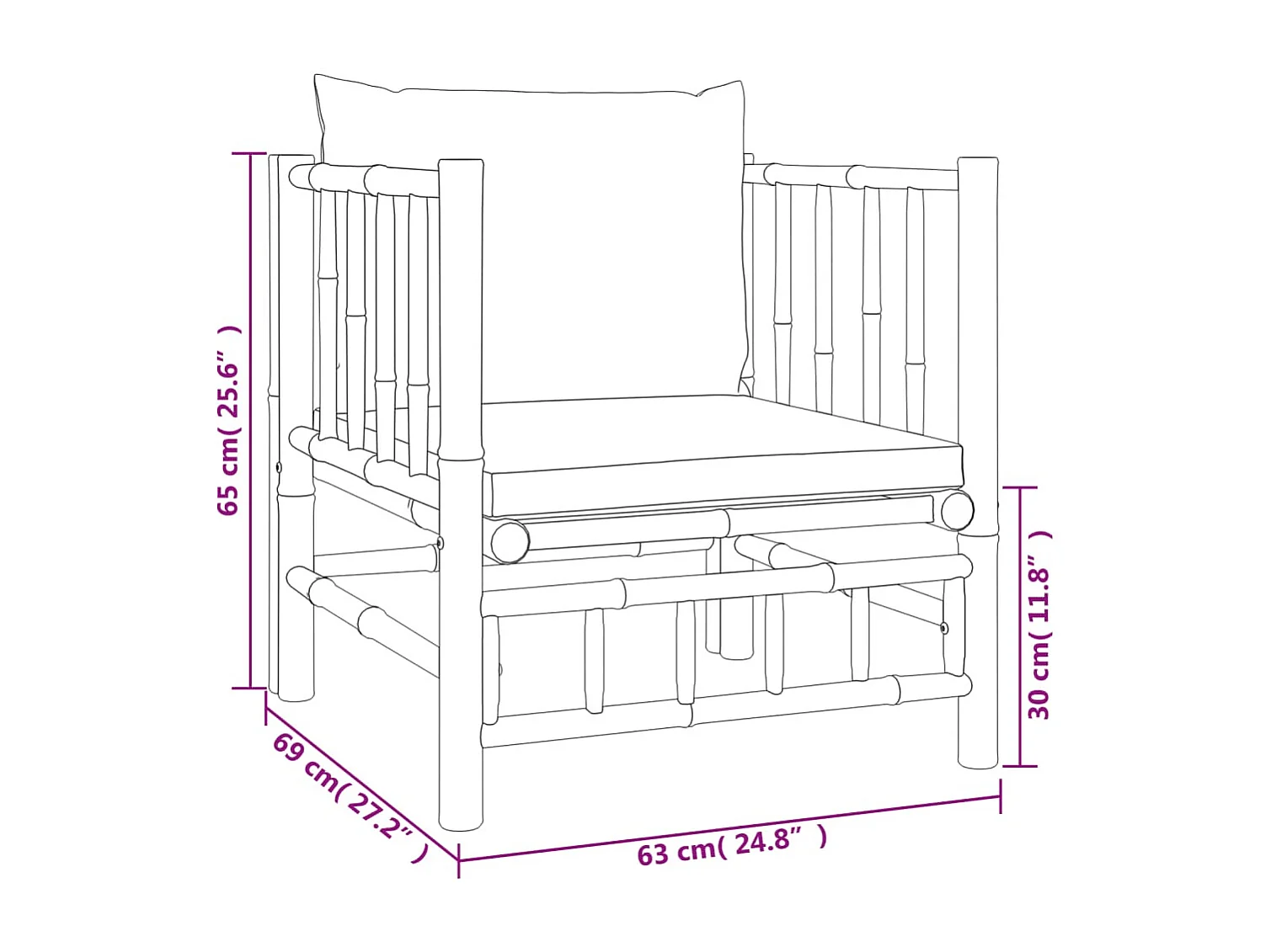 Salon de jardin 7 pcs avec coussins gris foncé bambou