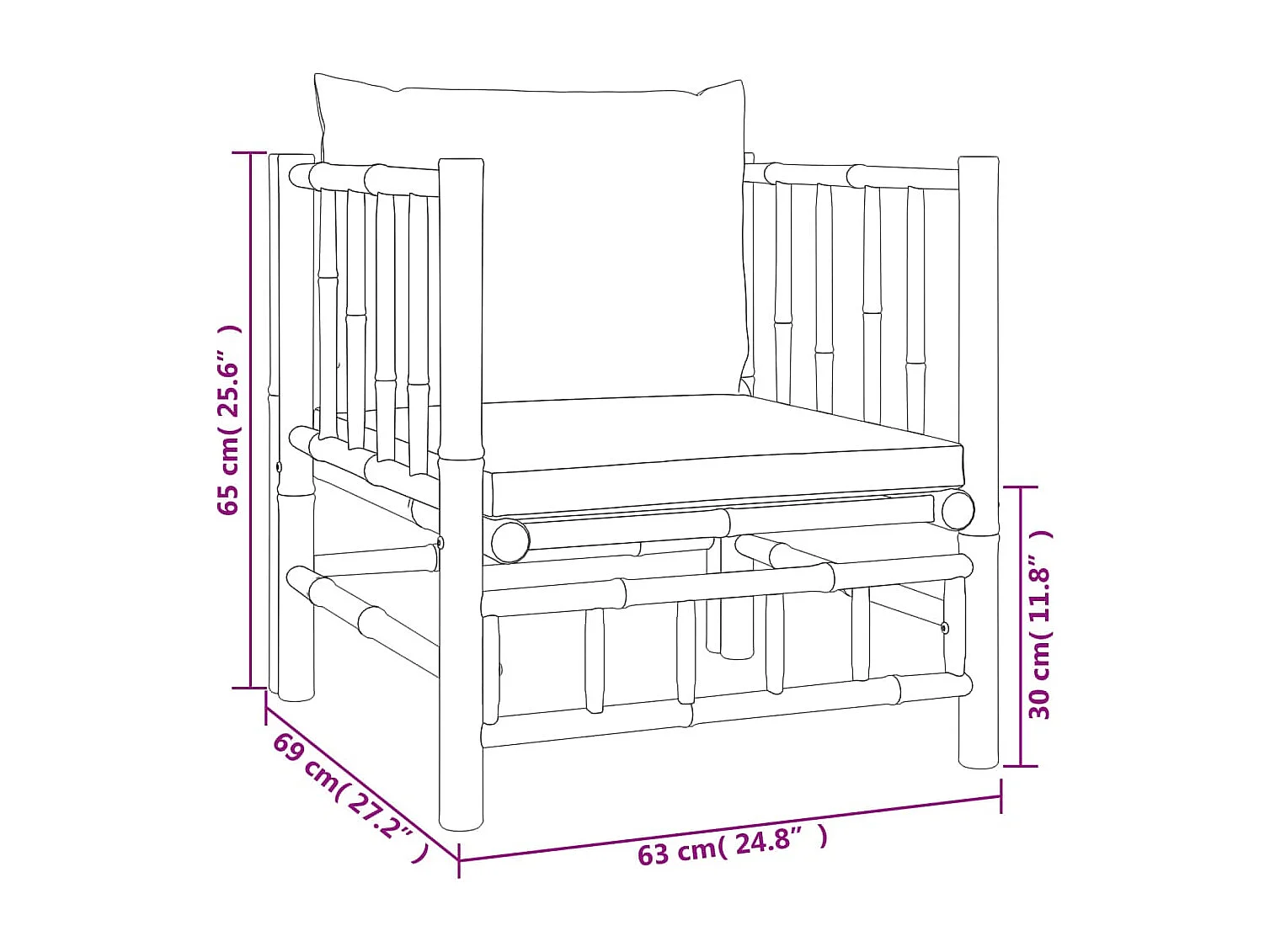 Salon de jardin 7 pcs avec coussins gris foncé bambou