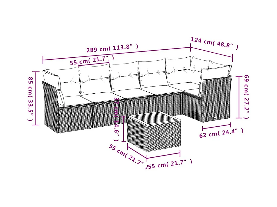 Salon de jardin 7 pcs avec coussins gris résine tressée