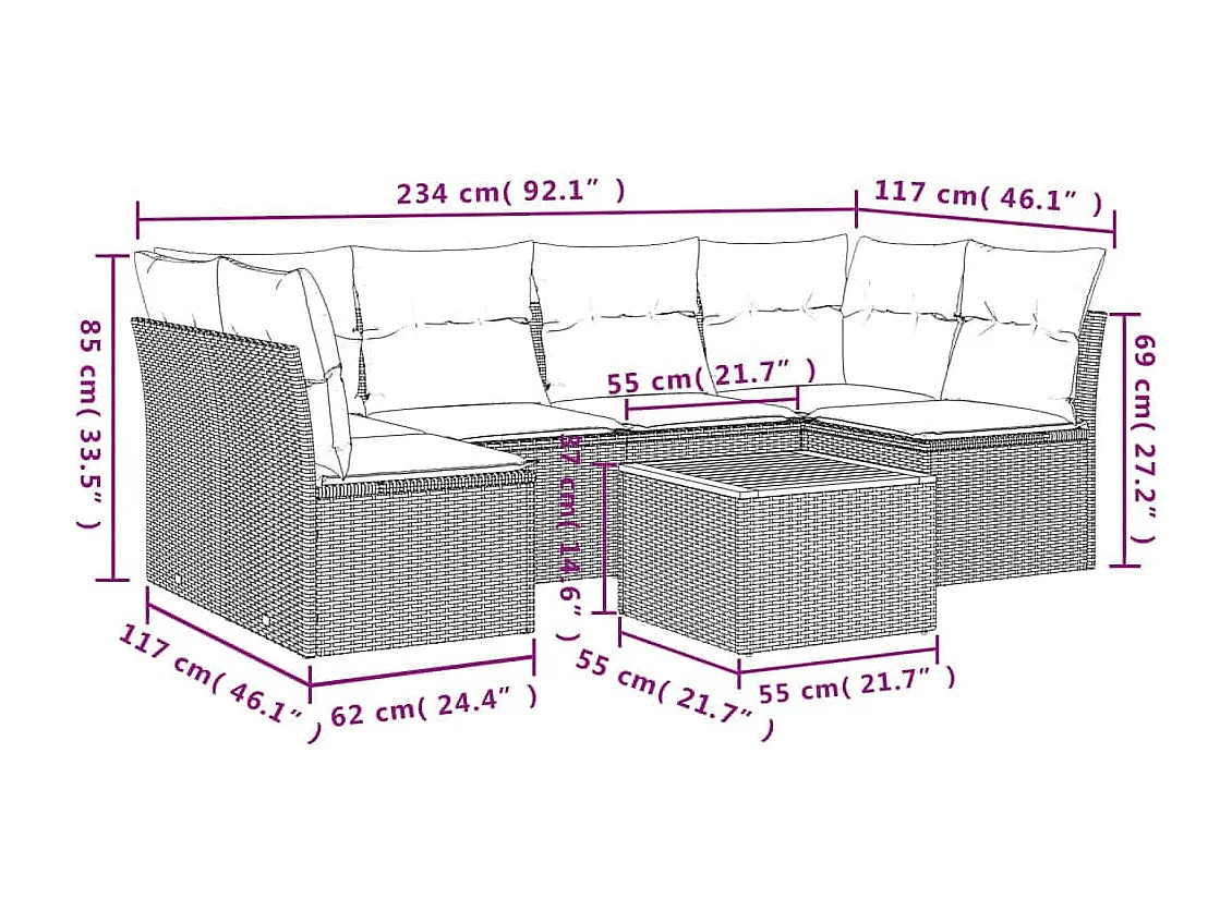 Salon de jardin 7 pcs avec coussins gris résine tressée