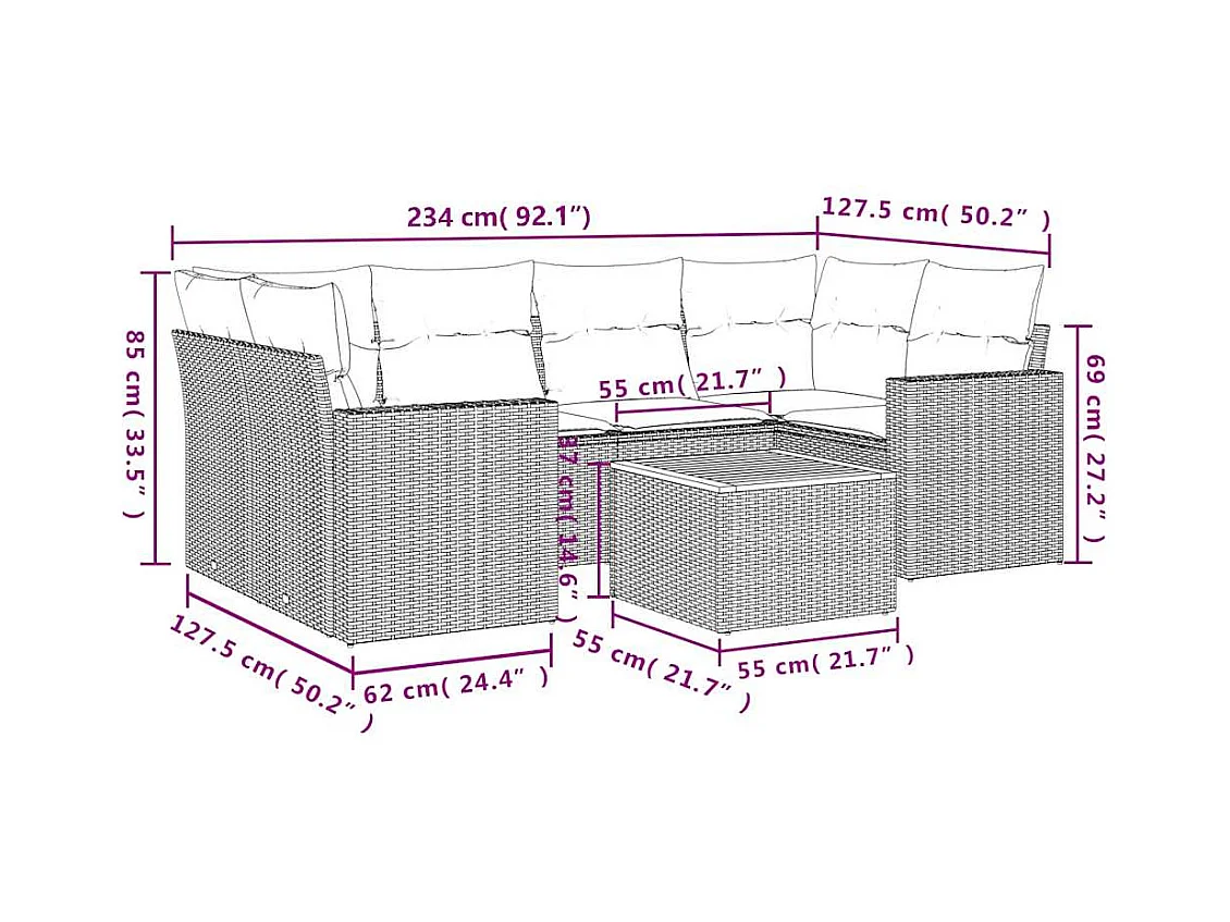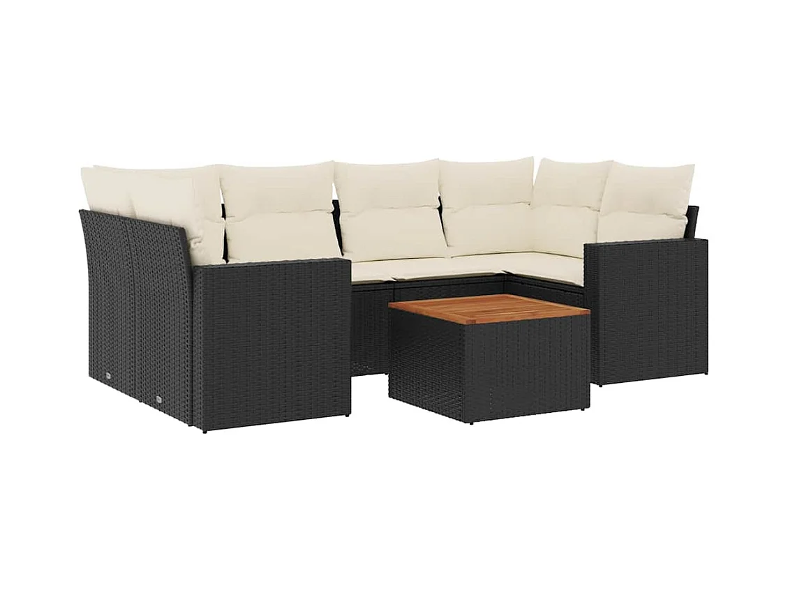 Salon de jardin 7 pcs avec coussins noir résine tressée