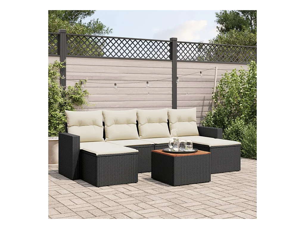 Salon de jardin 7 pcs avec coussins noir résine tressée