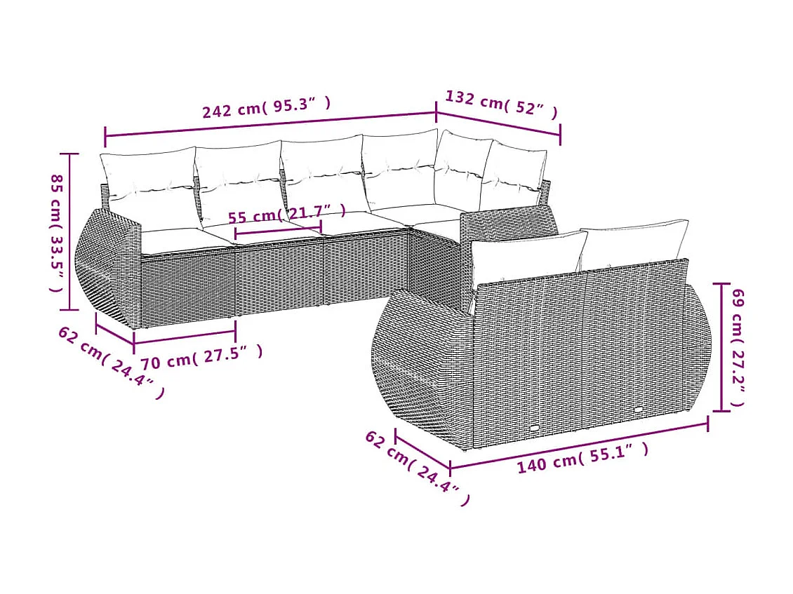 Salon de jardin 8 pcs avec coussins noir résine tressée