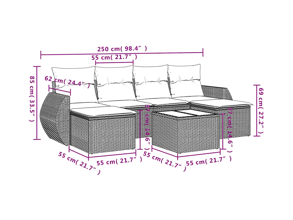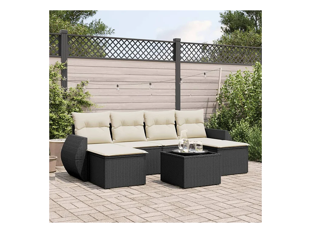 Salon de jardin 6 pcs avec coussins noir résine tressée