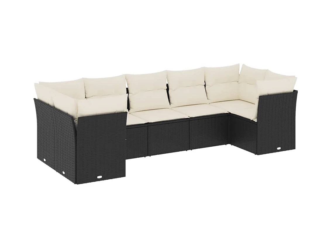 Salon de jardin 7 pcs avec coussins noir résine tressée
