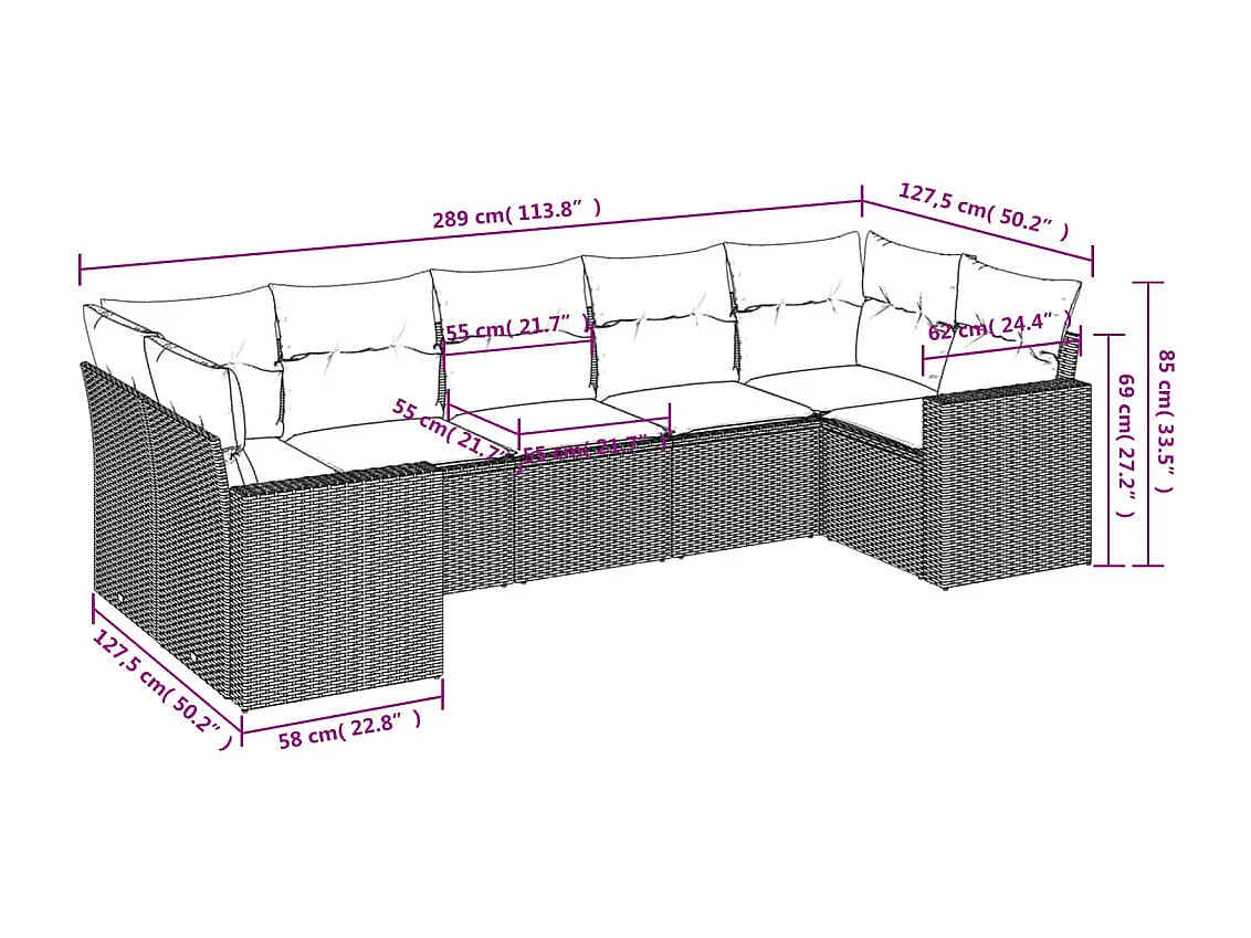 Salon de jardin 7 pcs avec coussins noir résine tressée