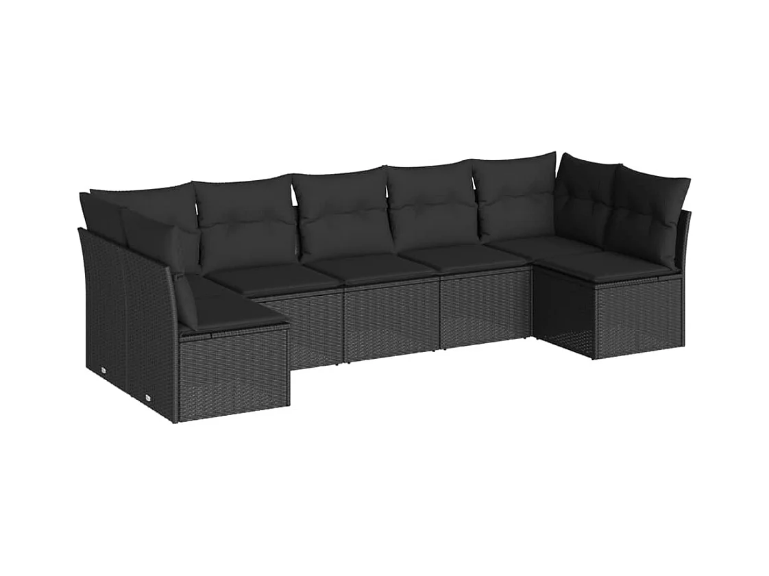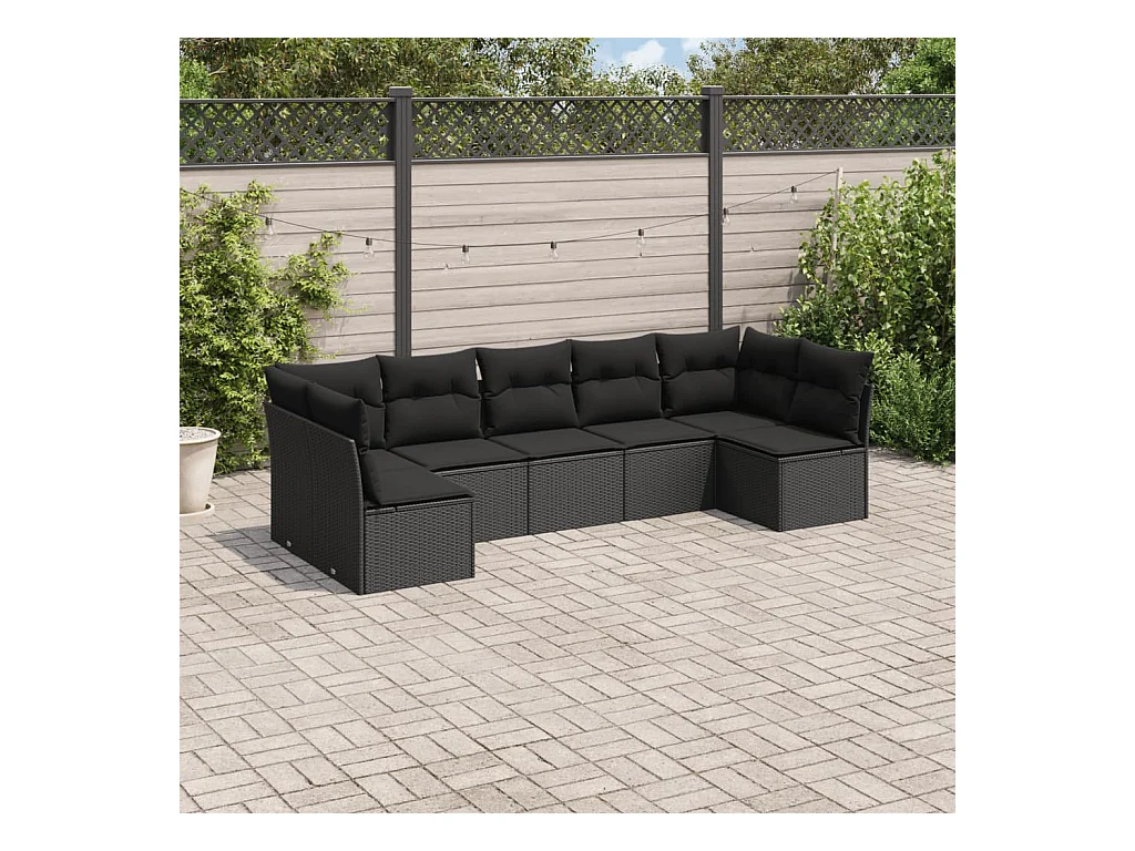 Salon de jardin 7 pcs avec coussins noir résine tressée