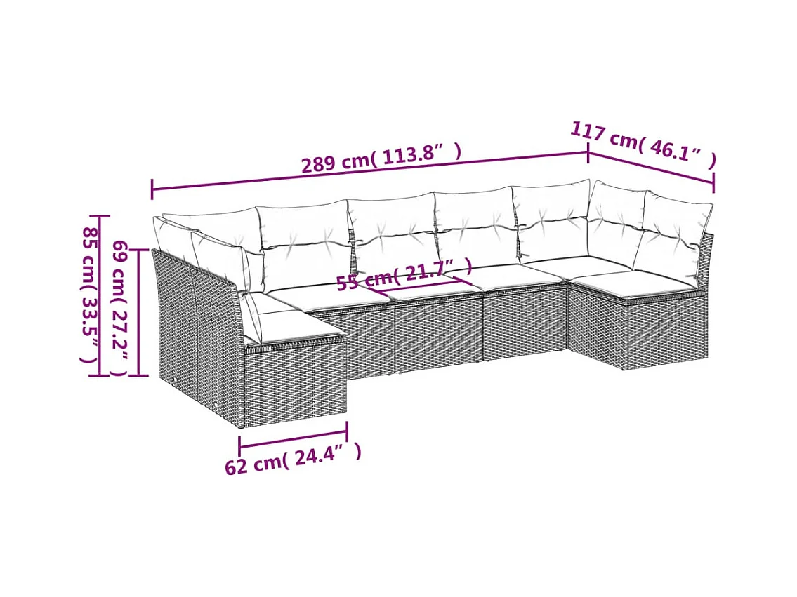 Salon de jardin 8 pcs avec coussins noir résine tressée