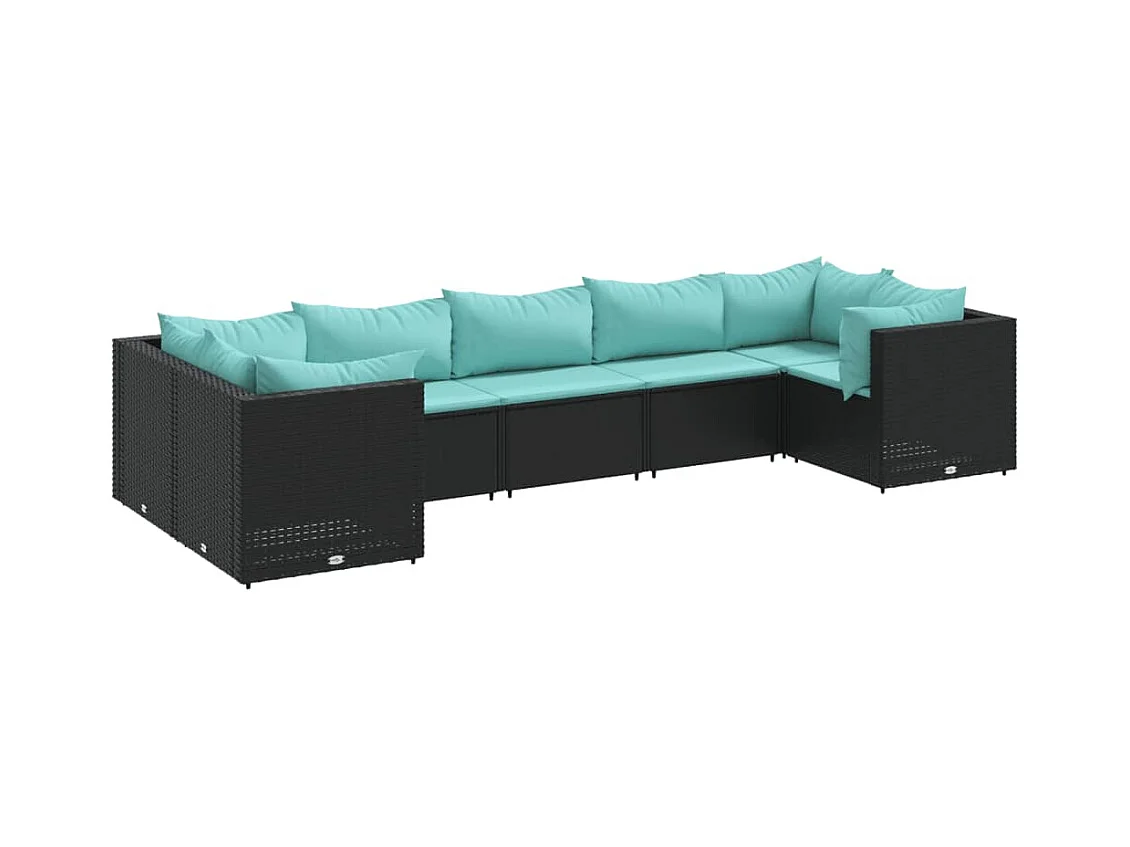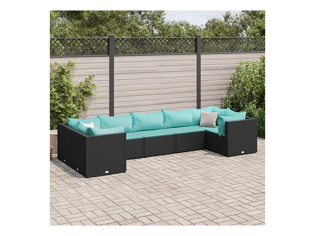 Salon de jardin 7 pcs avec coussins Noir Résine tressée