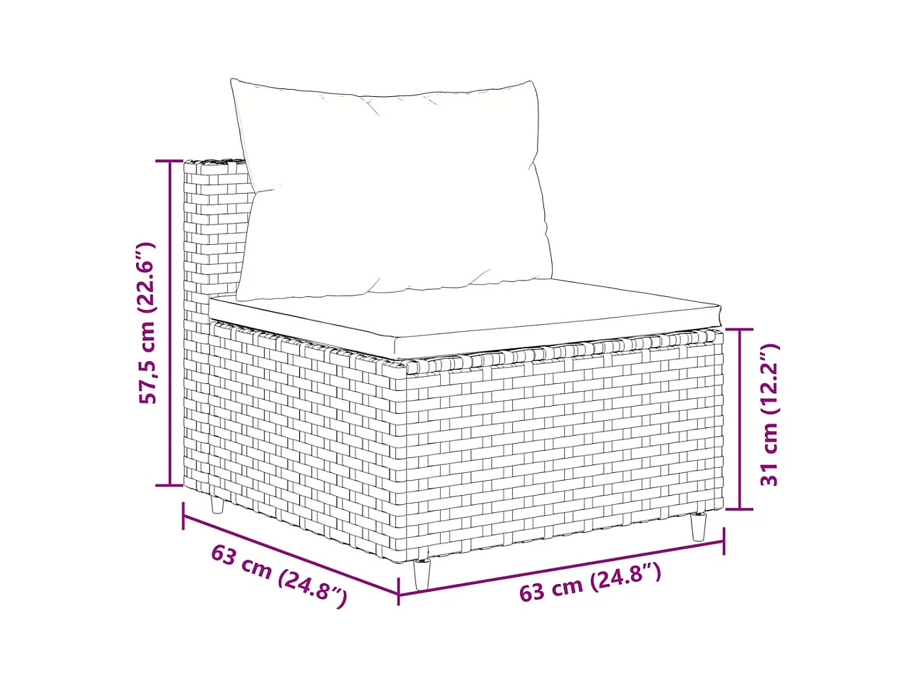 Salon de jardin 6 pcs avec coussins noir résine tressée
