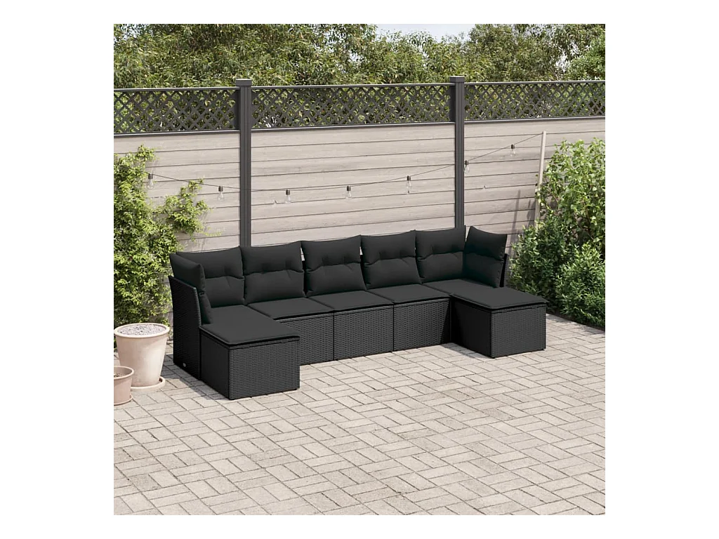 Salon de jardin 7 pcs avec coussins noir résine tressée