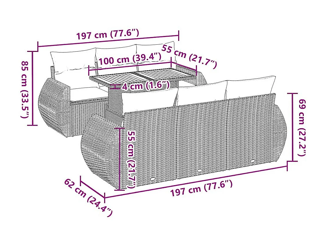 Salon complet de jardin Canapé 2 places et 2 fauteuils