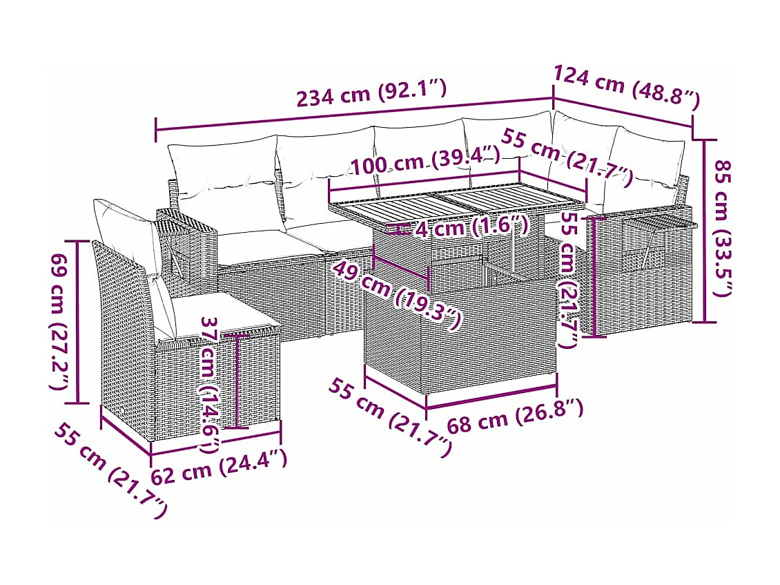 Salon complet de jardin Canapé 2 places et 2 fauteuils