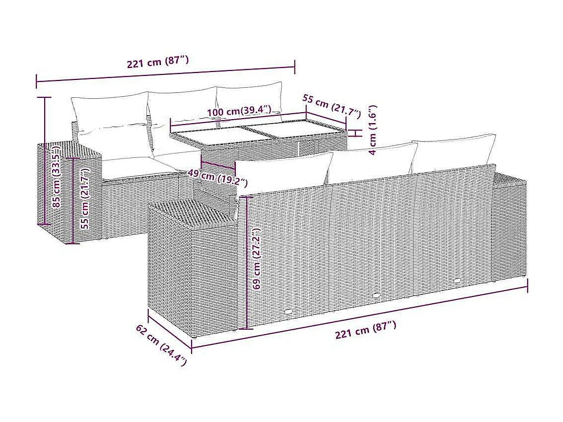 Salon de jardin 7 pcs avec coussins noir résine tressée