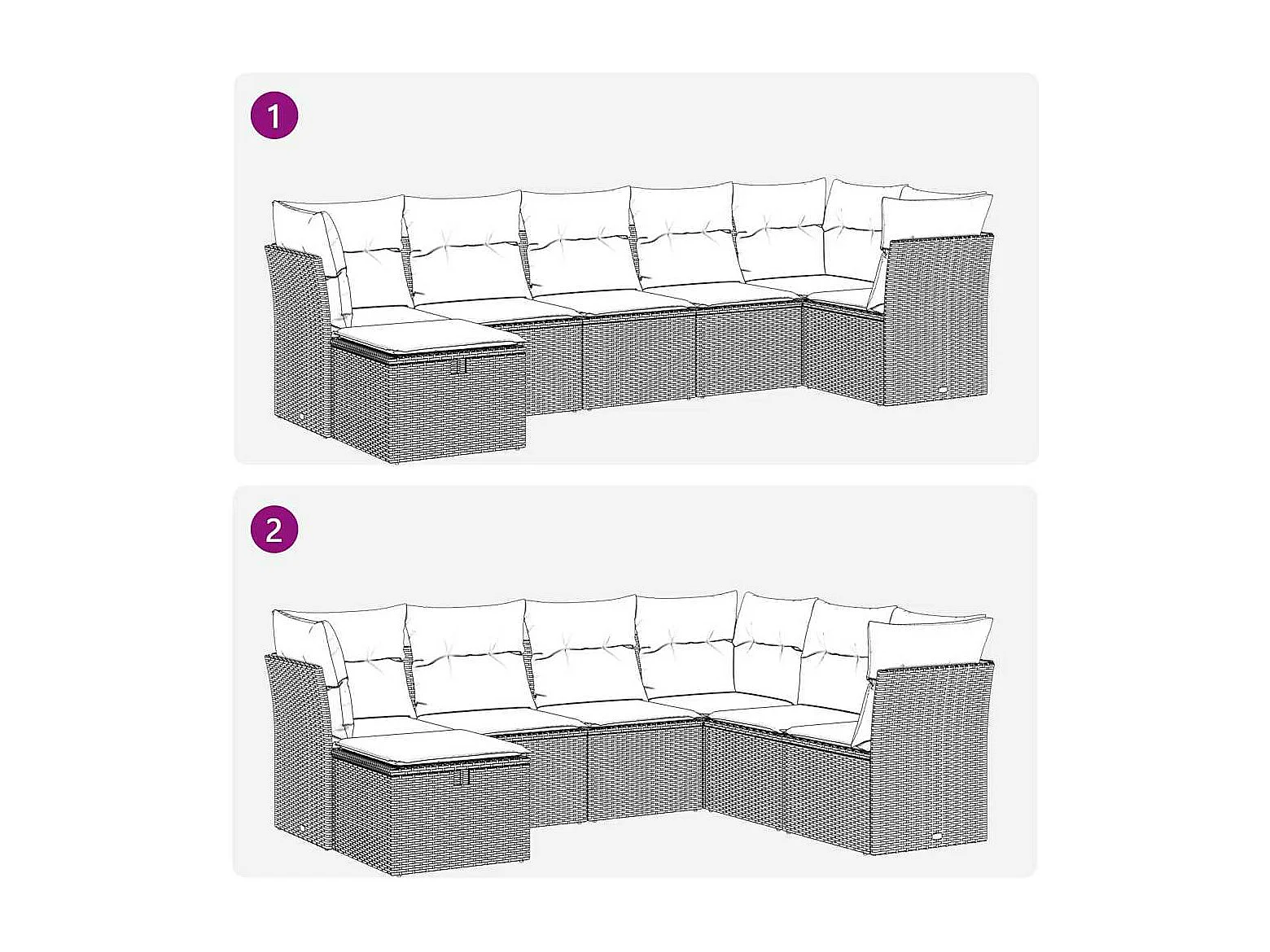 Salon de jardin 7 pcs avec coussins noir résine tressée