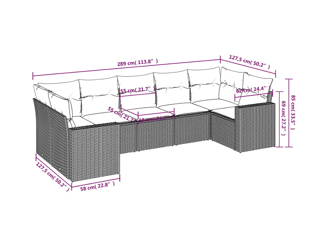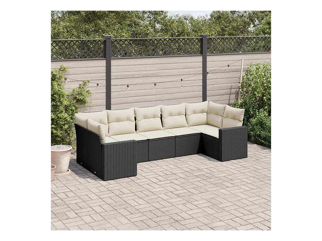 Salon de jardin 7 pcs avec coussins noir résine tressée