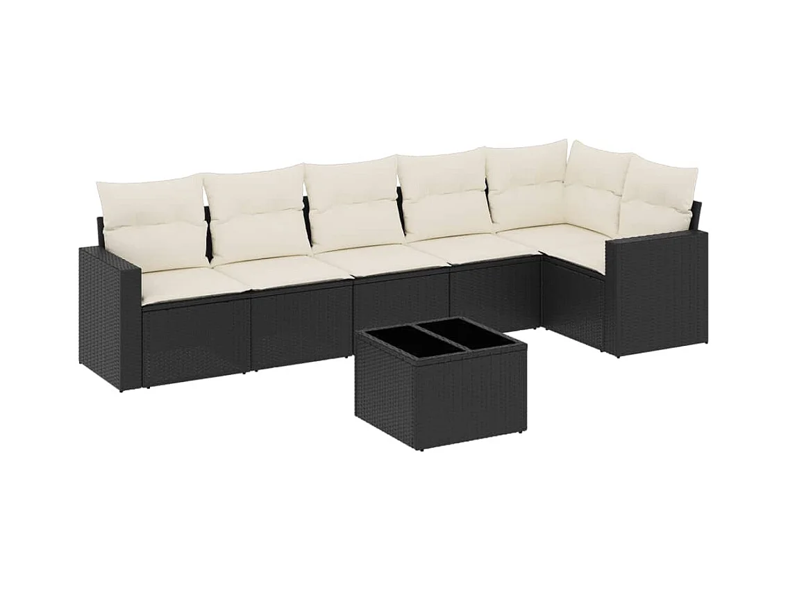 Salon de jardin 7 pcs avec coussins noir résine tressée