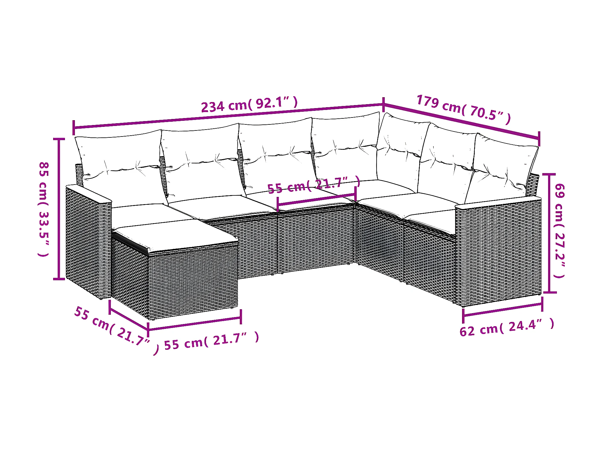 Salon de jardin 7 pcs avec coussins noir résine tressée