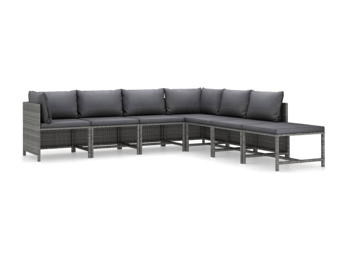 Salon de jardin 7 pcs avec coussins Résine tressée Gris BE90522