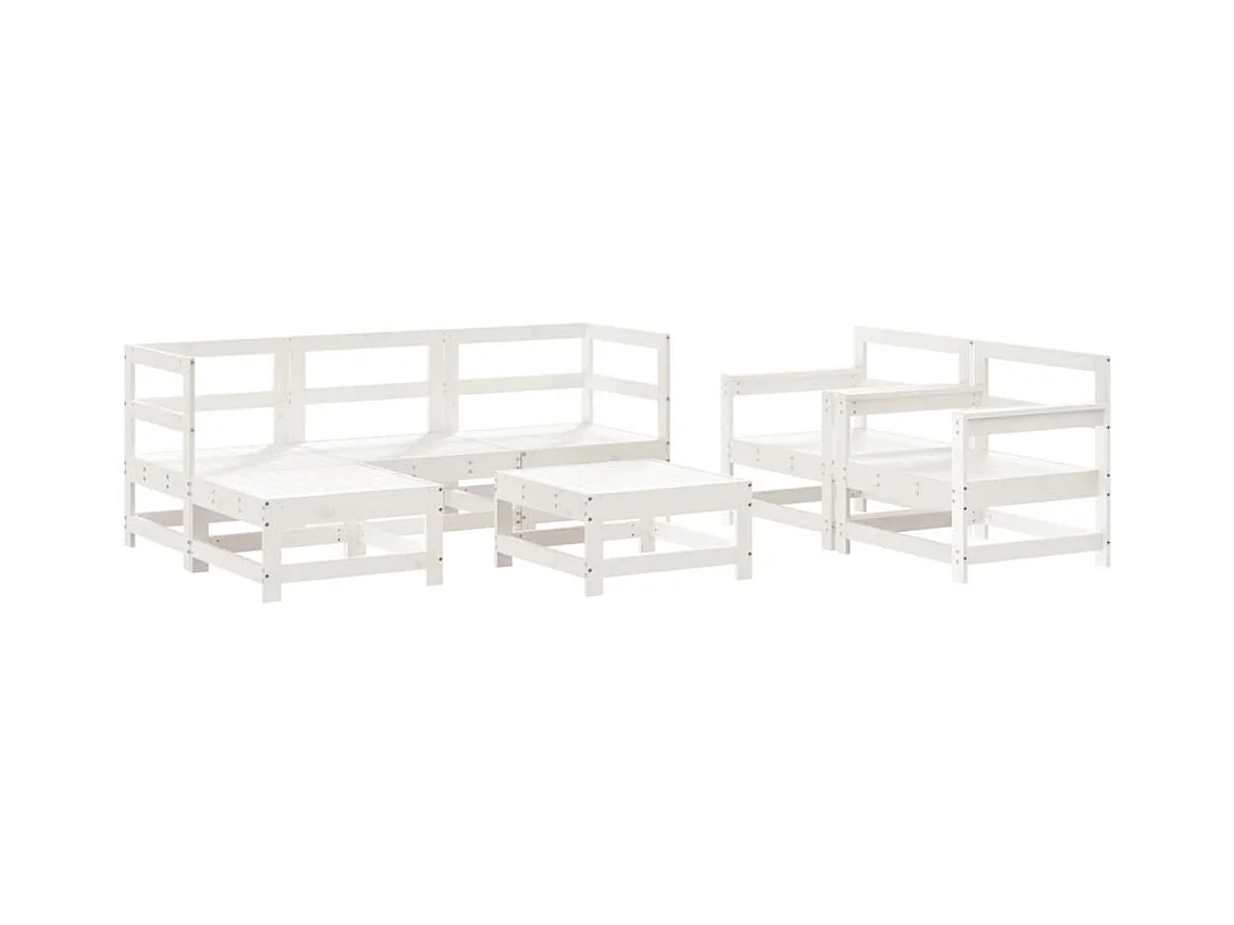 Salon de jardin 6 pcs blanc bois de pin massif