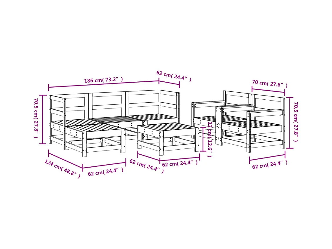 Salon de jardin 7 pcs Blanc Bois de pin massif