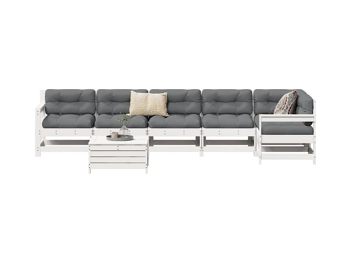 Salon de jardin 7 pcs blanc bois de pin massif
