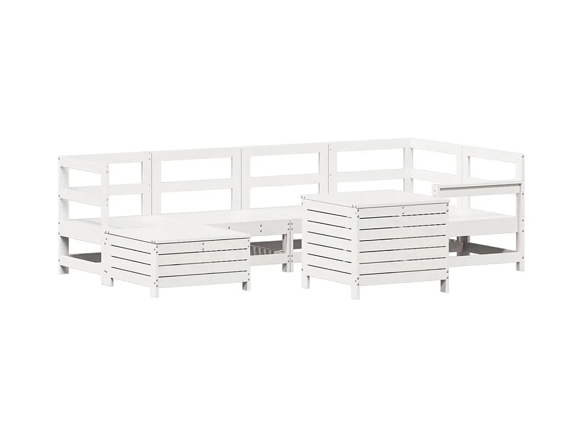 Salon de jardin 6 pcs Blanc Bois de pin massif