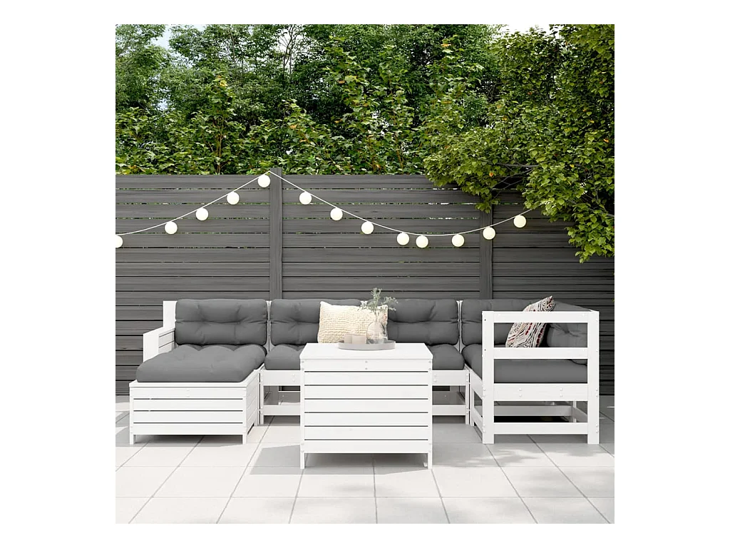 Salon de jardin 8 pcs Blanc Bois de pin massif