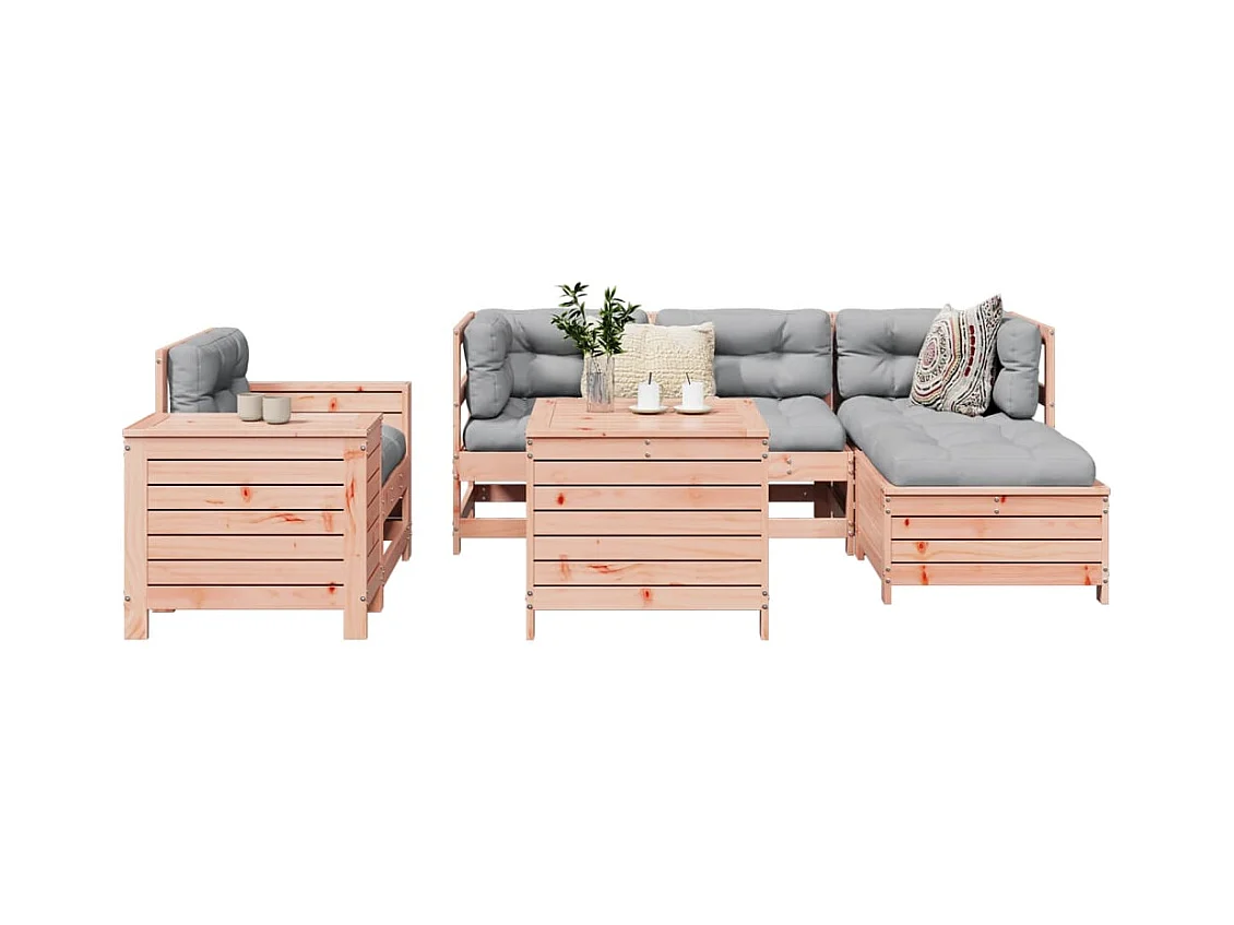 Salon de jardin 6 pcs avec coussins bois massif Douglas