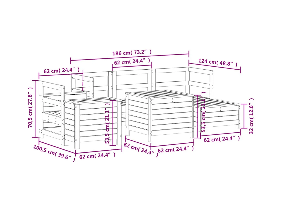 Salon de jardin 7 pcs bois massif sapin de douglas